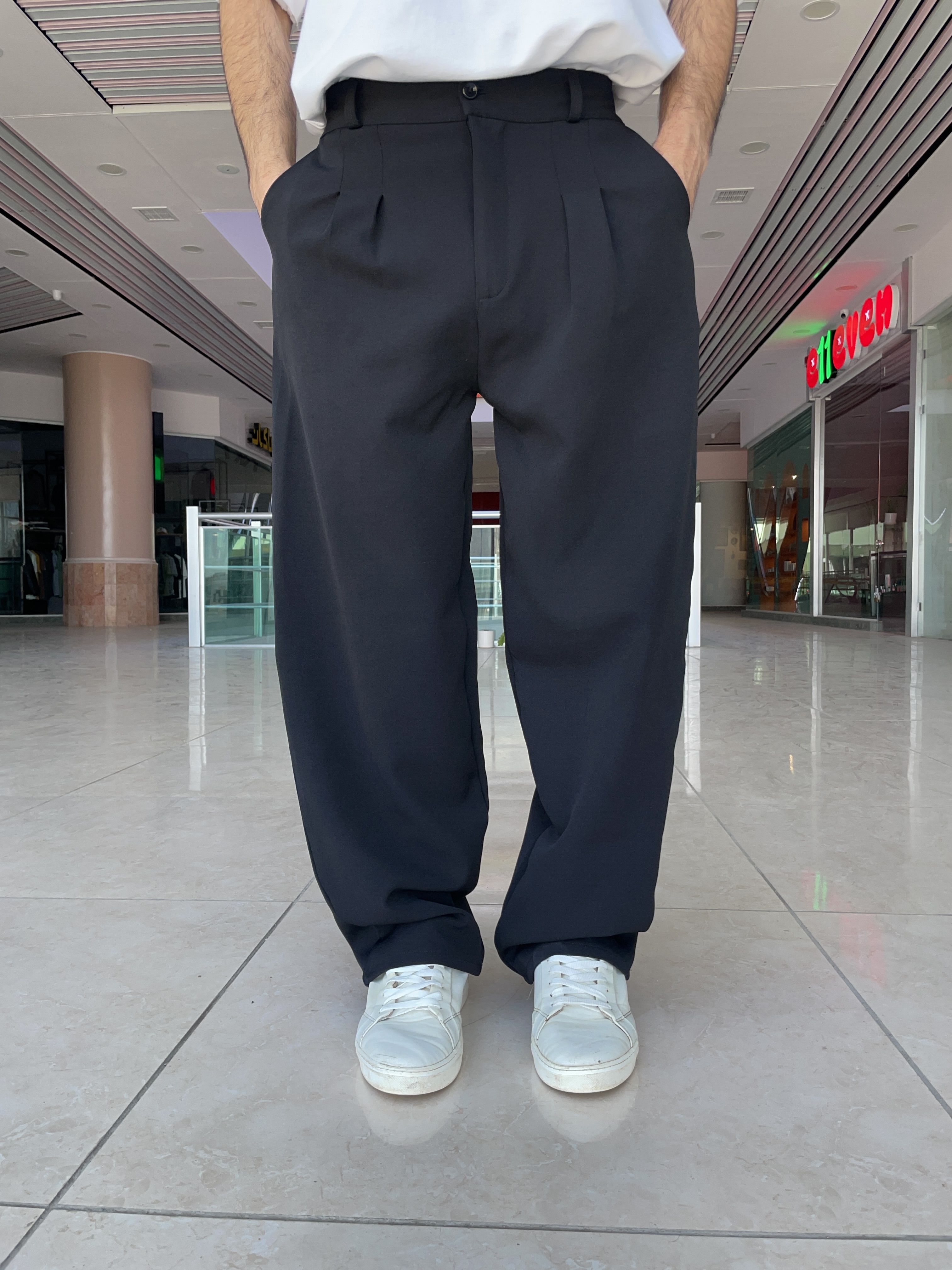 شلوار بگ پارچه ای ،پارچه مازراتی پشت کمر کش پیله دار (سرمه ای)