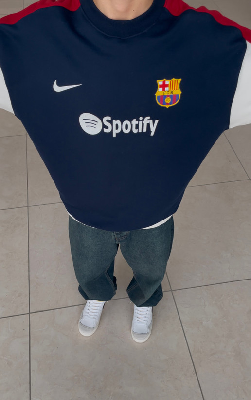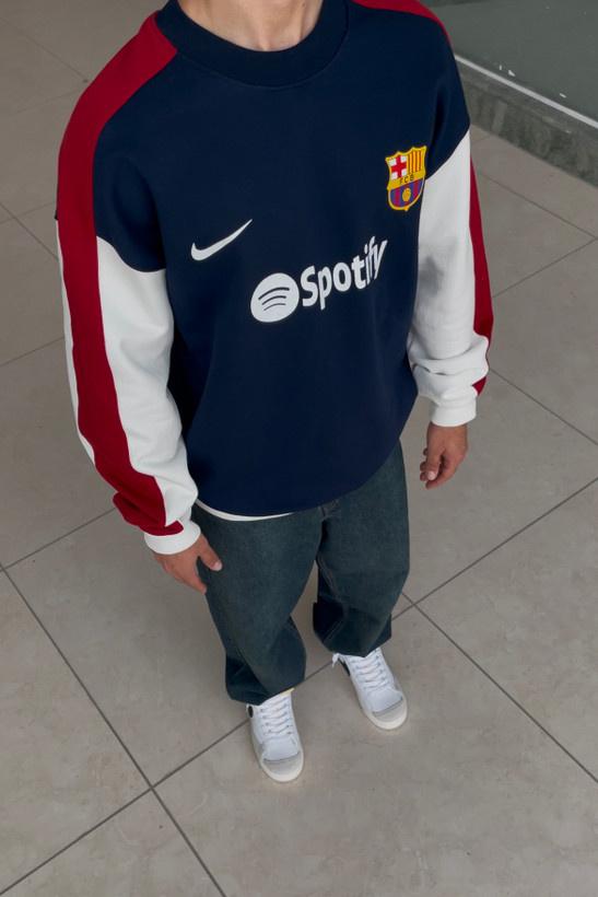 کیت دورس بارسلونا یقه گرد سه نخ داخل کرک