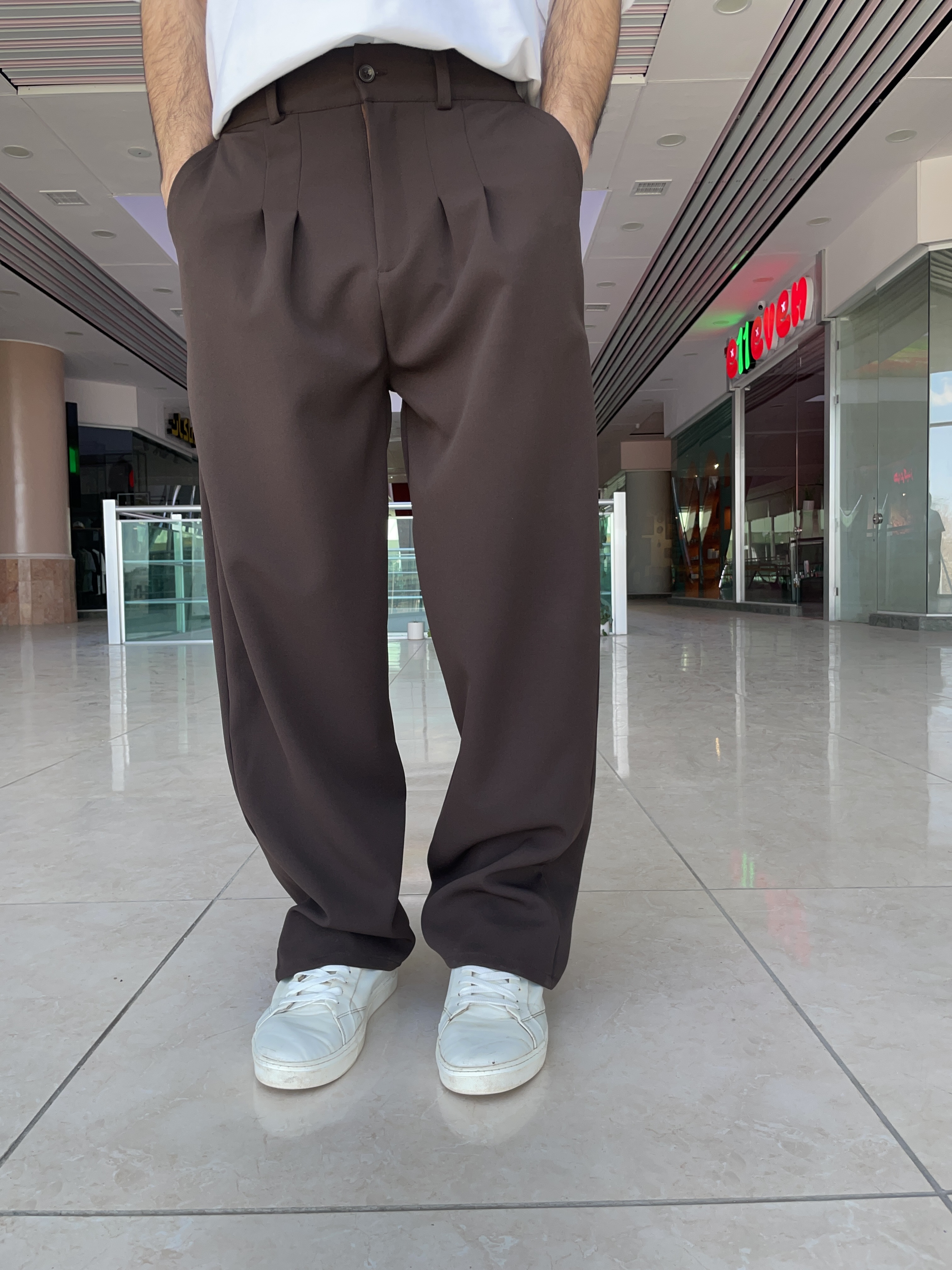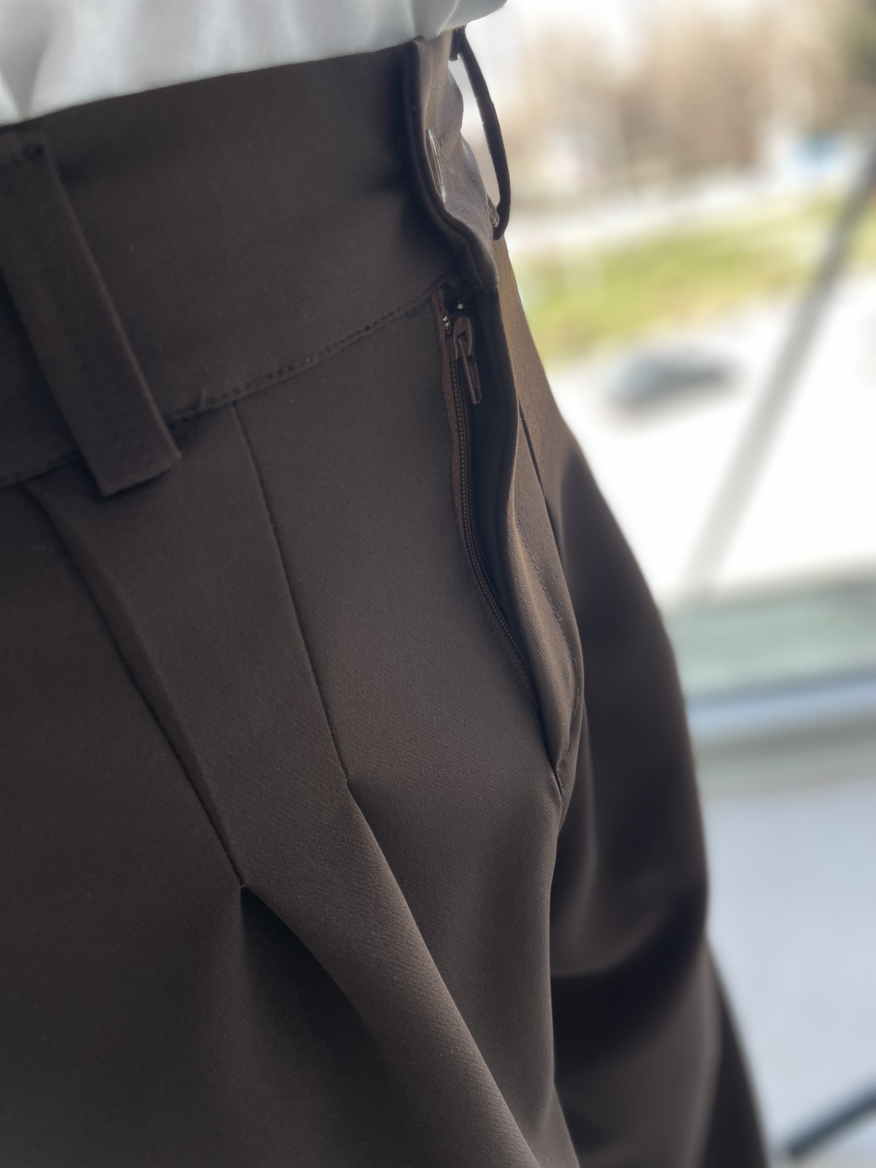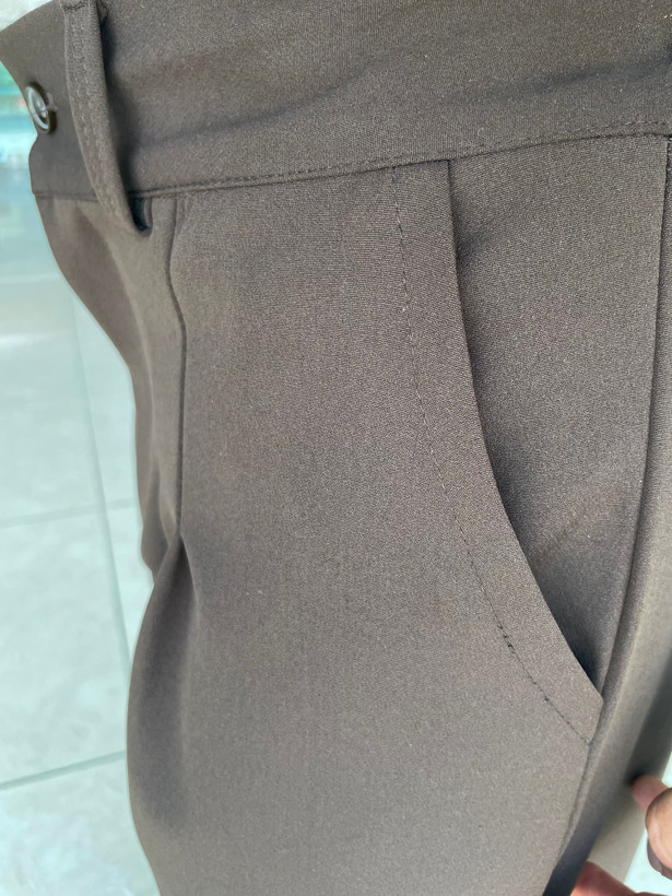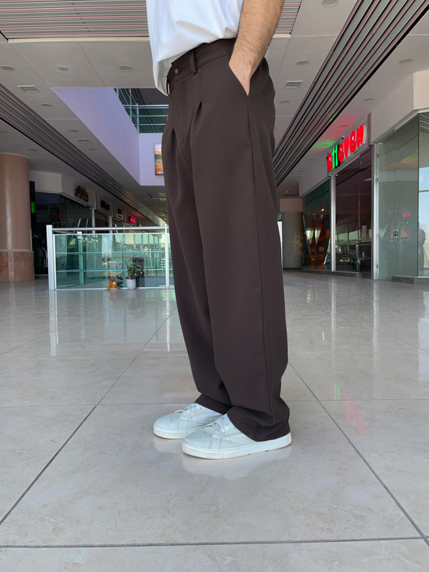 شلوار بگ پارچه ای ،پارچه مازراتی پشت کمر کش پیله دار (قهوه ای سوخته)