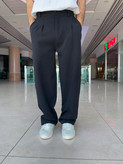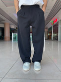 شلوار بگ پارچه ای ،پارچه مازراتی پشت کمر کش پیله دار (مشکی)